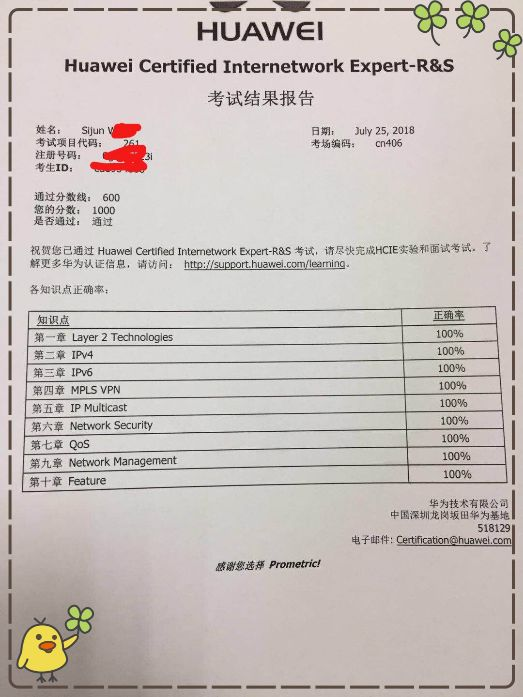 南昌寶德網(wǎng)絡(luò)江西分公司HCIE班學(xué)員開(kāi)始參加華為HCIE筆試,截至目前所有參加考試的學(xué)生都順利通過(guò)考試,能夠取得如此好的成績(jī)小寶默默的為這些童鞋點(diǎn)贊。小寶給各位曬下童鞋們的成績(jī)單,小宇宙開(kāi)始爆發(fā)。